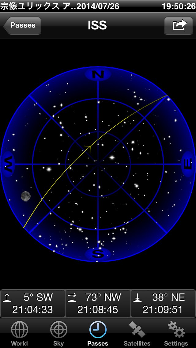 ほしぞらスタッフの皆さま お疲れさまです、 與古光です。 8月2日のほしぞらウォッチング終了直後の21時過ぎに、 ISS(国際宇宙ステーション)が見えるようですので、 ルートをアップします。