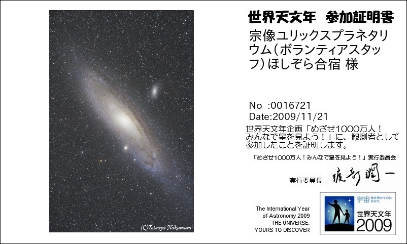 世界天文年めざせ1000万人!星を見た報告認定書 - 資料室