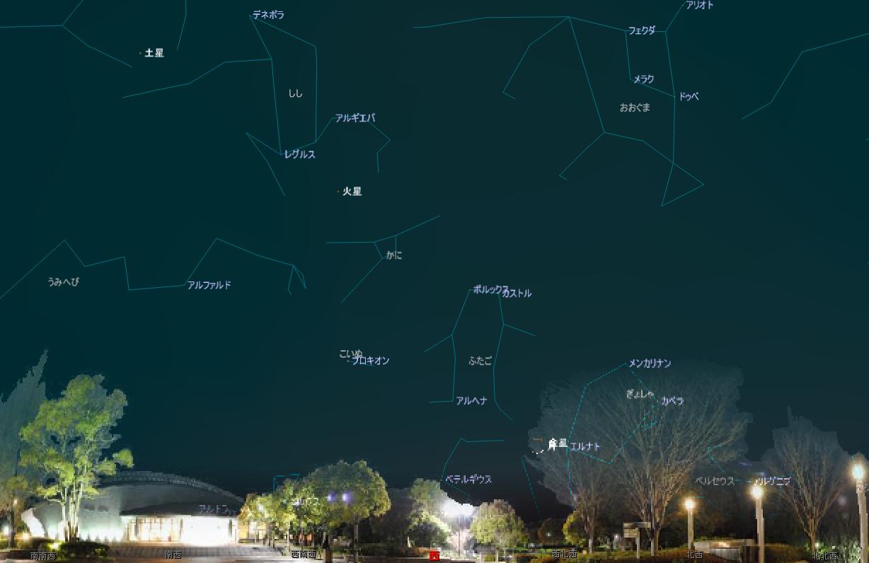 月と金星が木の陰に入っているイメージなので、これ以降は観望対象を火星と土星にシフトした方が良さそうです。