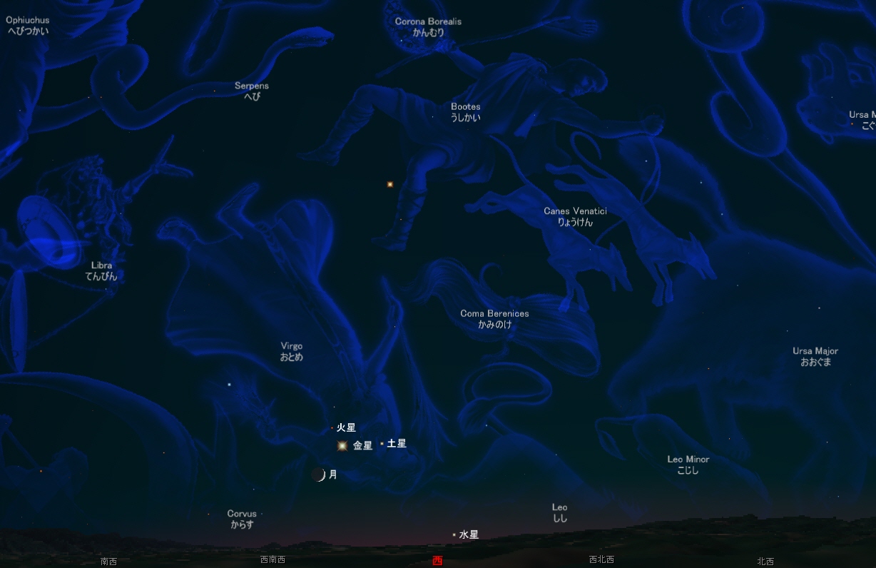 清和高原天文台の、8月13日19時55分の西の空をステラナビゲータで表示してみました。