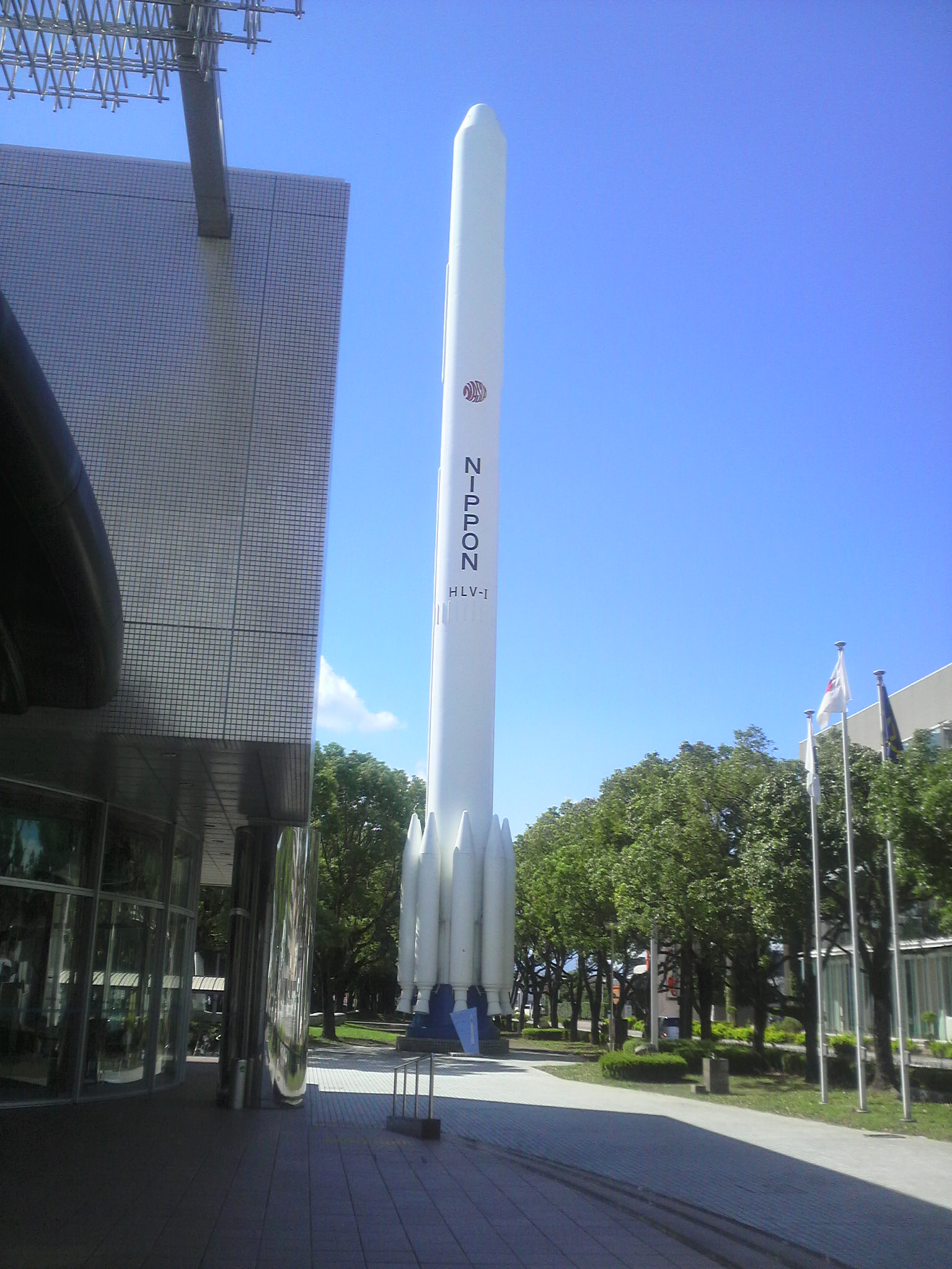 外観は銀色のドーム状で、隣にはH-1ロケットの実物大模型(全高40m)があります。