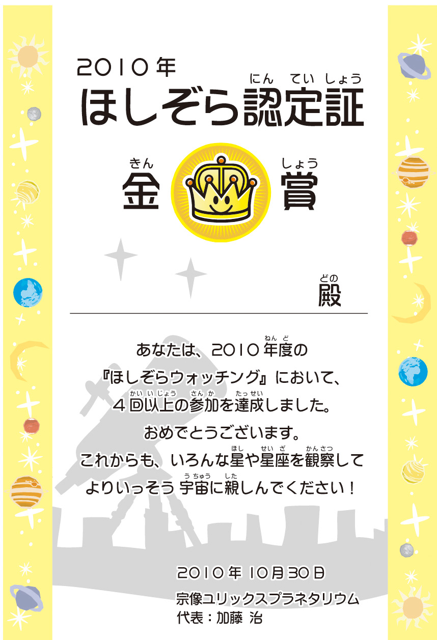 ほしぞら認定証2010 金賞通常版 - 資料室