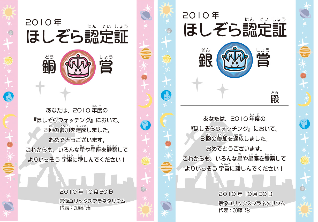 ほしぞら認定証2010 銀と銅賞 - 資料室