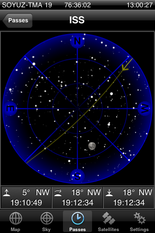 iPodtouchのアプリ「GoSatWatch」から、ISSの飛行経路をアップします。