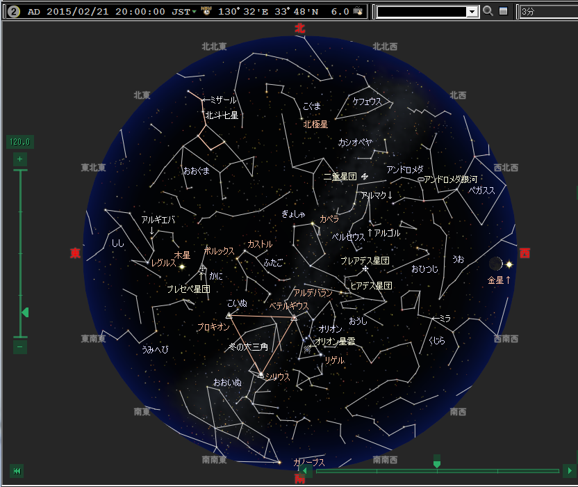 特別観望会のついでに、2月の観望会の星空を作ってみました。